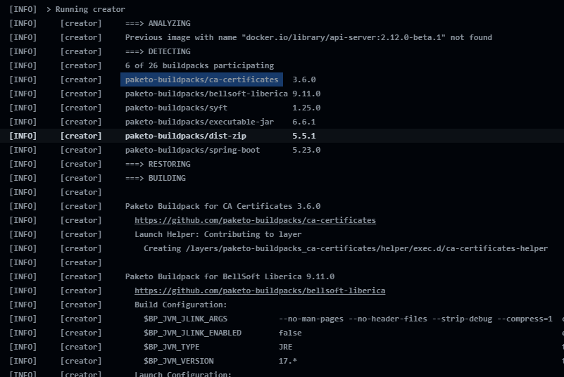 Terrakube componentes (api, registry and executor) are using buildpacks to create the docker images