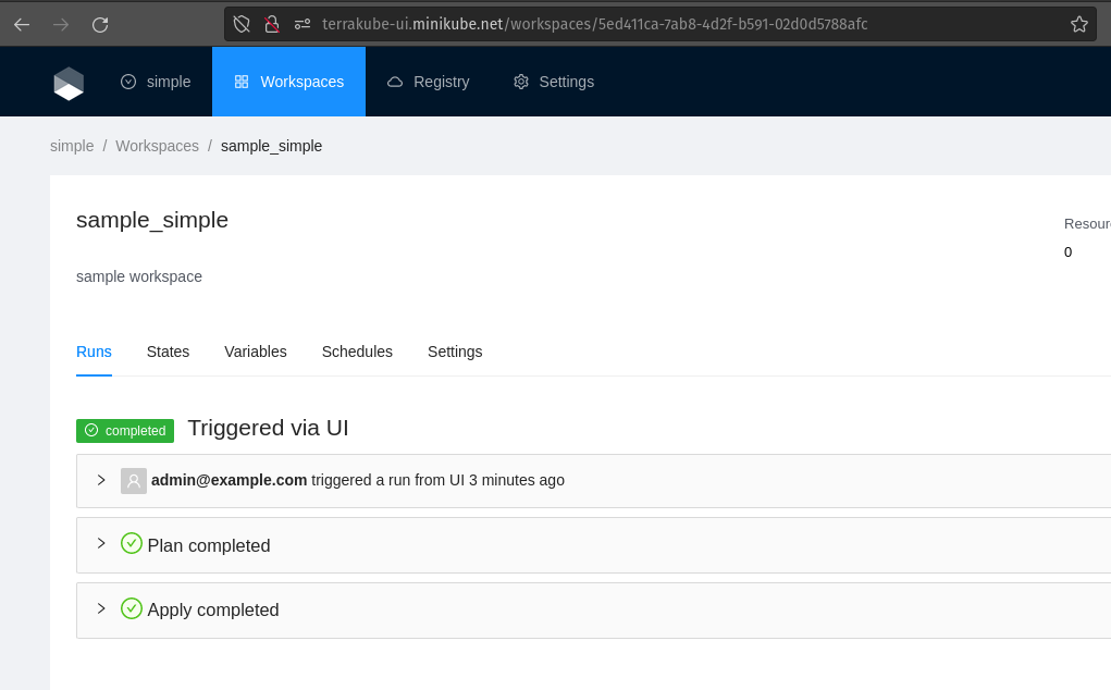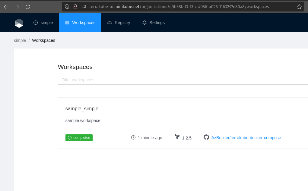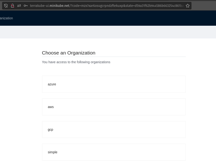 Visit <http://terrakube-ui.minikube.net> and login using <admin@example.com> with password admin