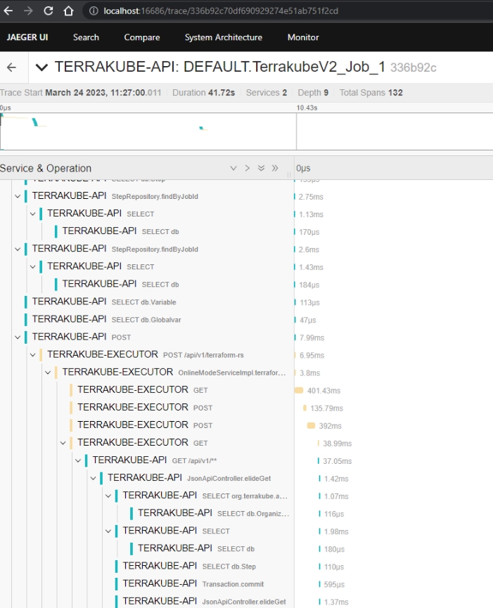 You can also test Terrakube using the Open Telemetry example setup to see how the components are working internally and check some internal logs