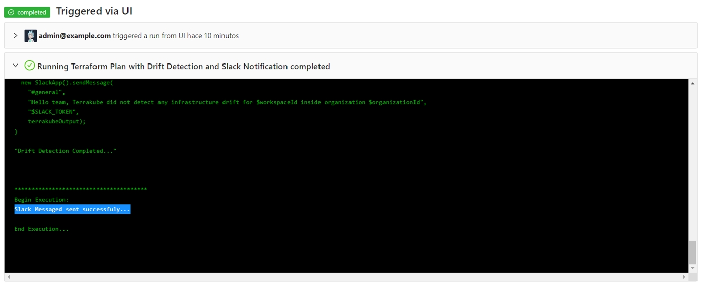 Once you have the number of changes we can add a simple validation to send a Slack Message using the Terrakube extension to notify you teams if an infrastructure drift was detected