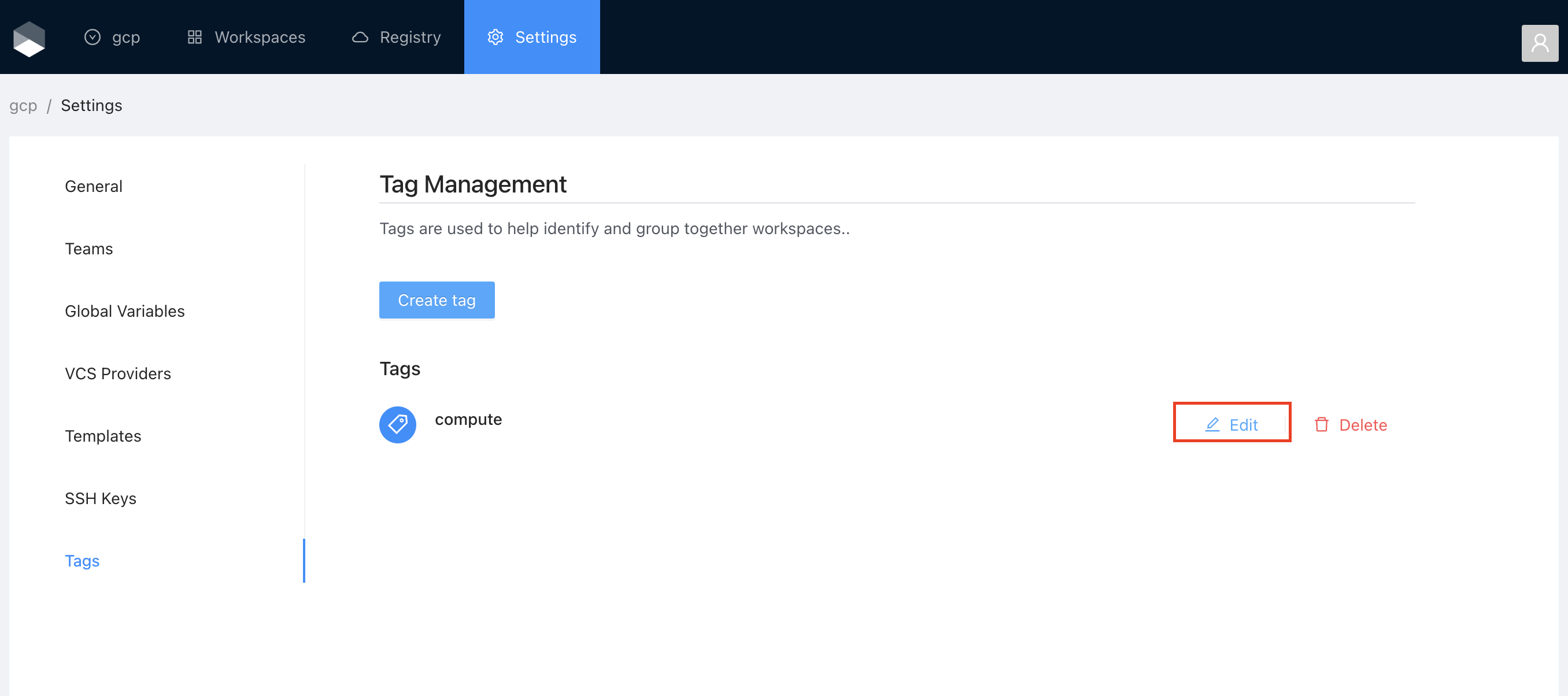 You will see the new tag in the list. And now you can use the tag in the workspaces within the organization