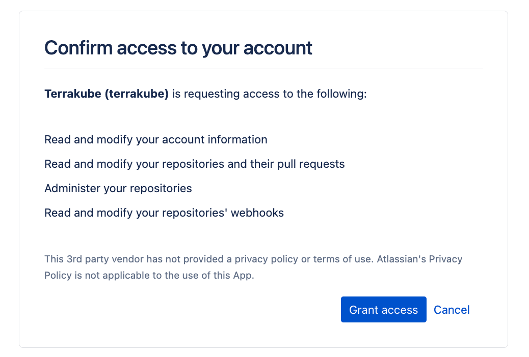 You will see a Bitbucket window, click the Grant Access button to complete the connection