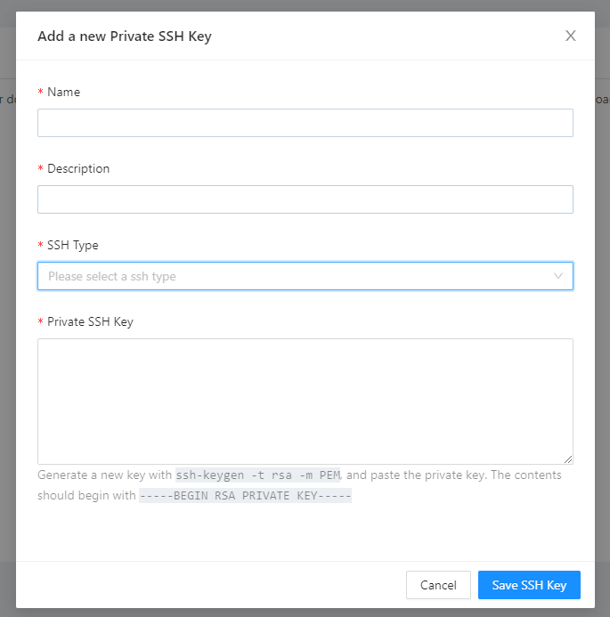 Terrakube can use SSH keys to authenticate to your private repositories. The SSH keys can be uploaded inside the settings menu.