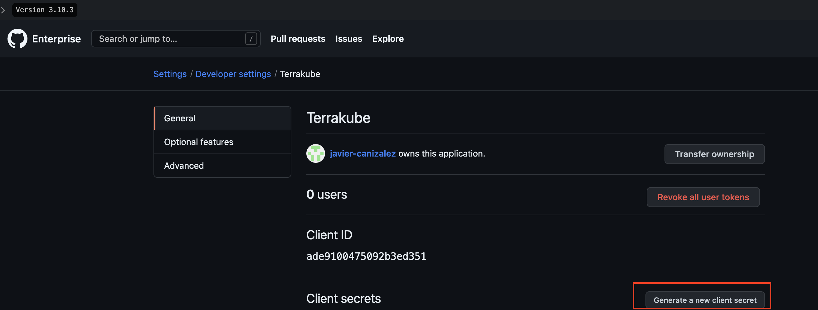 Next, generate a new client secret