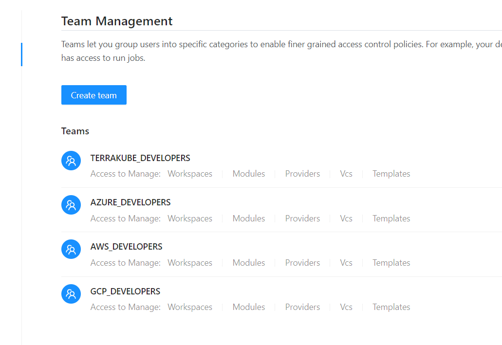 Each organization is preloaded with the following templates to run Terrakube jobs: