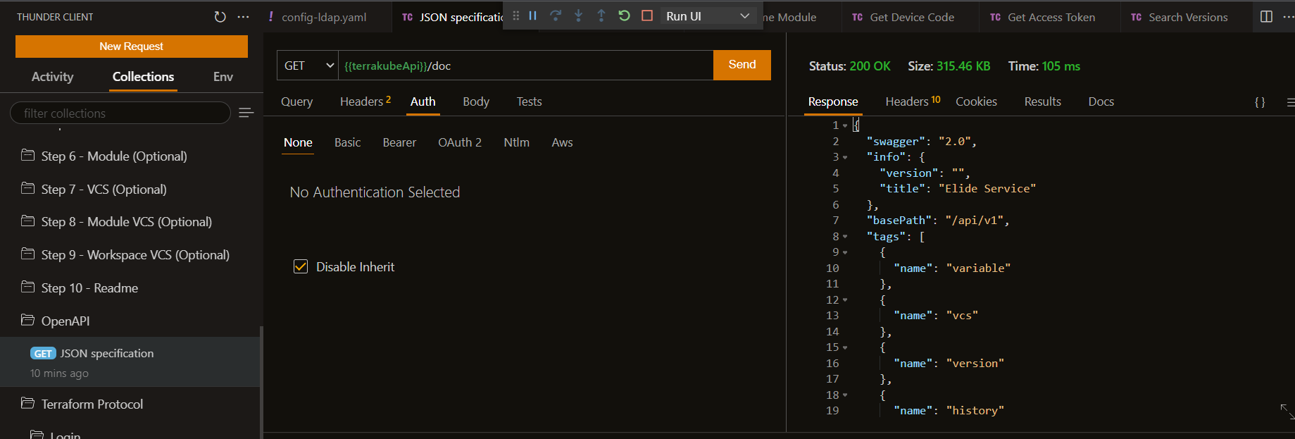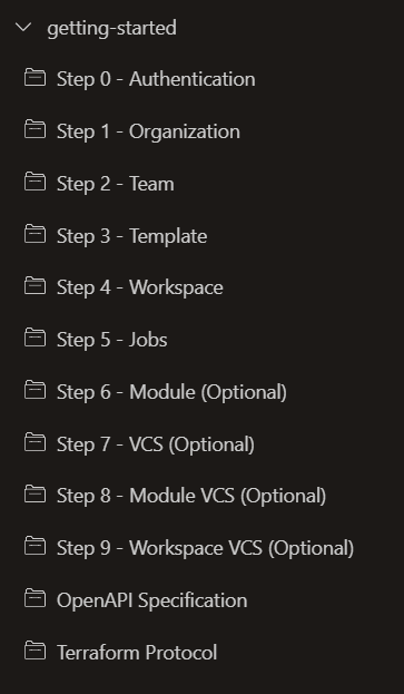 Terraform login protocol can be tested using the thunder-client collection:
