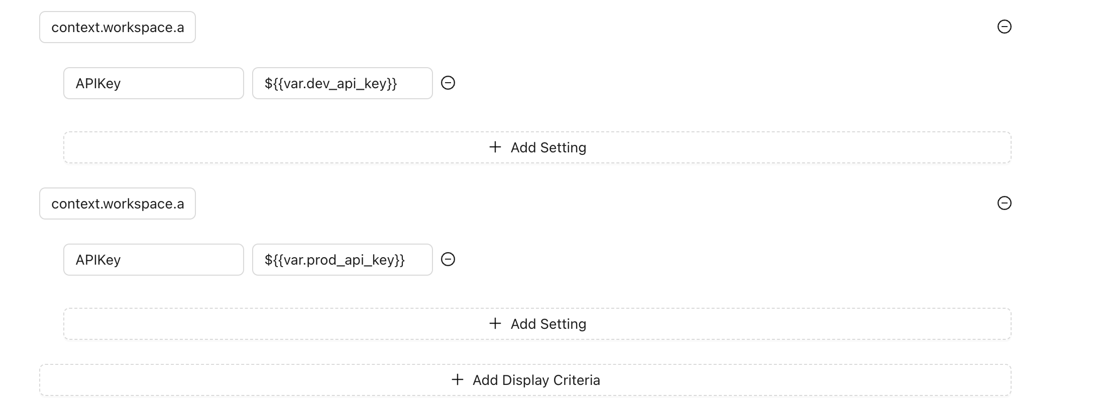 For example, instead of directly storing an API key in the settings, you can reference a variable: