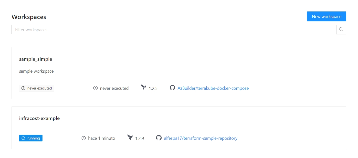 Lets create a workspace with this information in Terrakube to test the template and run the deployment.