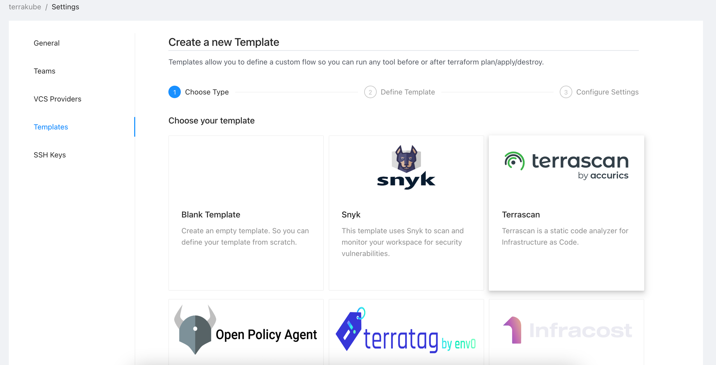 To see the complete list for terrakube extensions see the github repo. This repo is always growing so its possible the tool you need is already there. In this repo you can also see more templates examples for things like approvals, variable injection and so on.