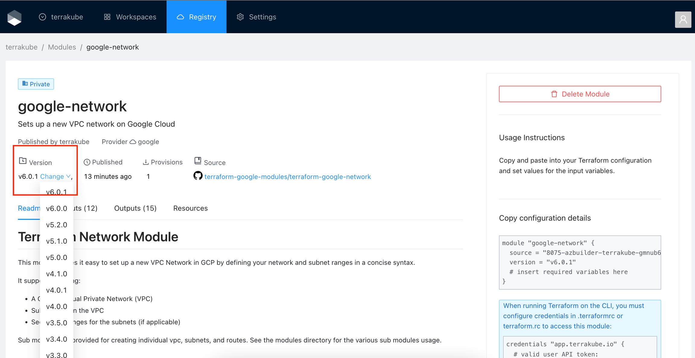 All users in an organization with Manage Modules permission can view the Terrakube private registry and use the available providers and modules.