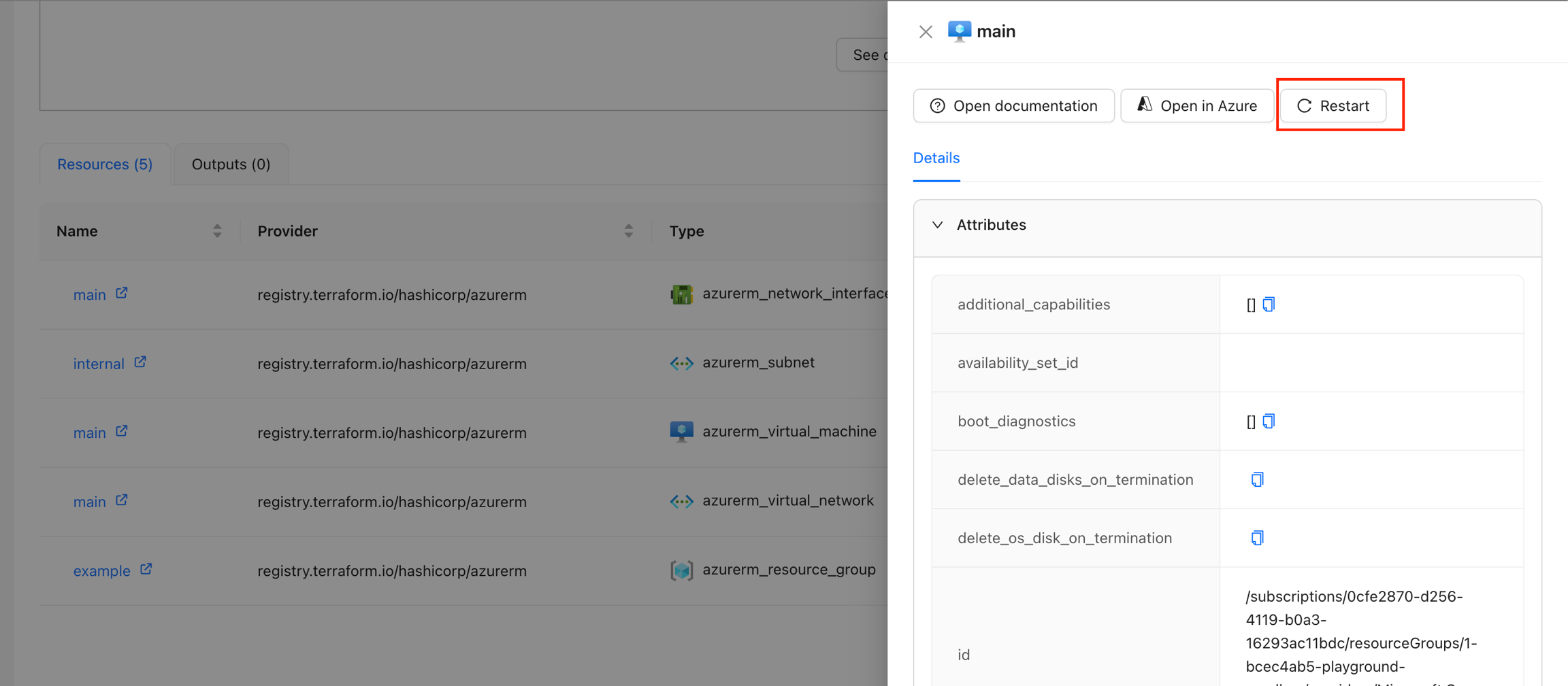 By default, this Action is disabled and when enabled will appear for all resources that have resource type azurerm_virtual_machine. If you want to display this action only for certain resources, please check display criteria.