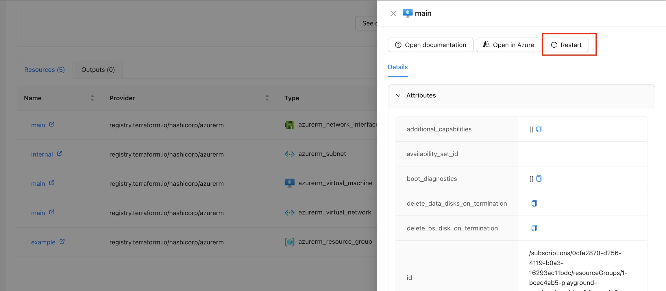 By default, this Action is disabled and when enabled will appear for all resources that have resource type azurerm_virtual_machine
