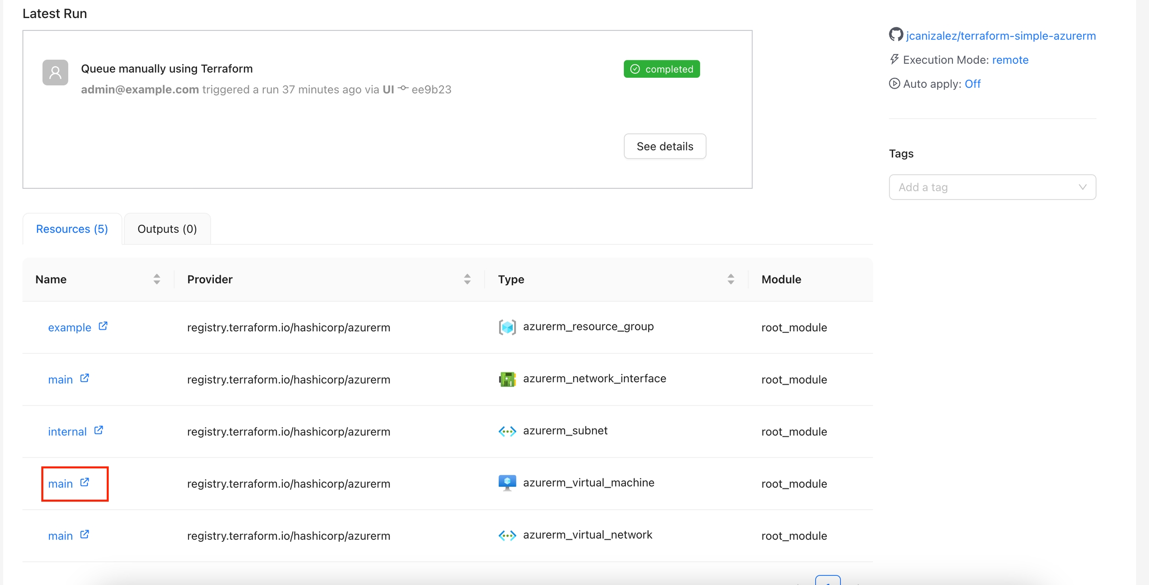 By default, this Action is disabled and when enabled will appear for all the azurerm
