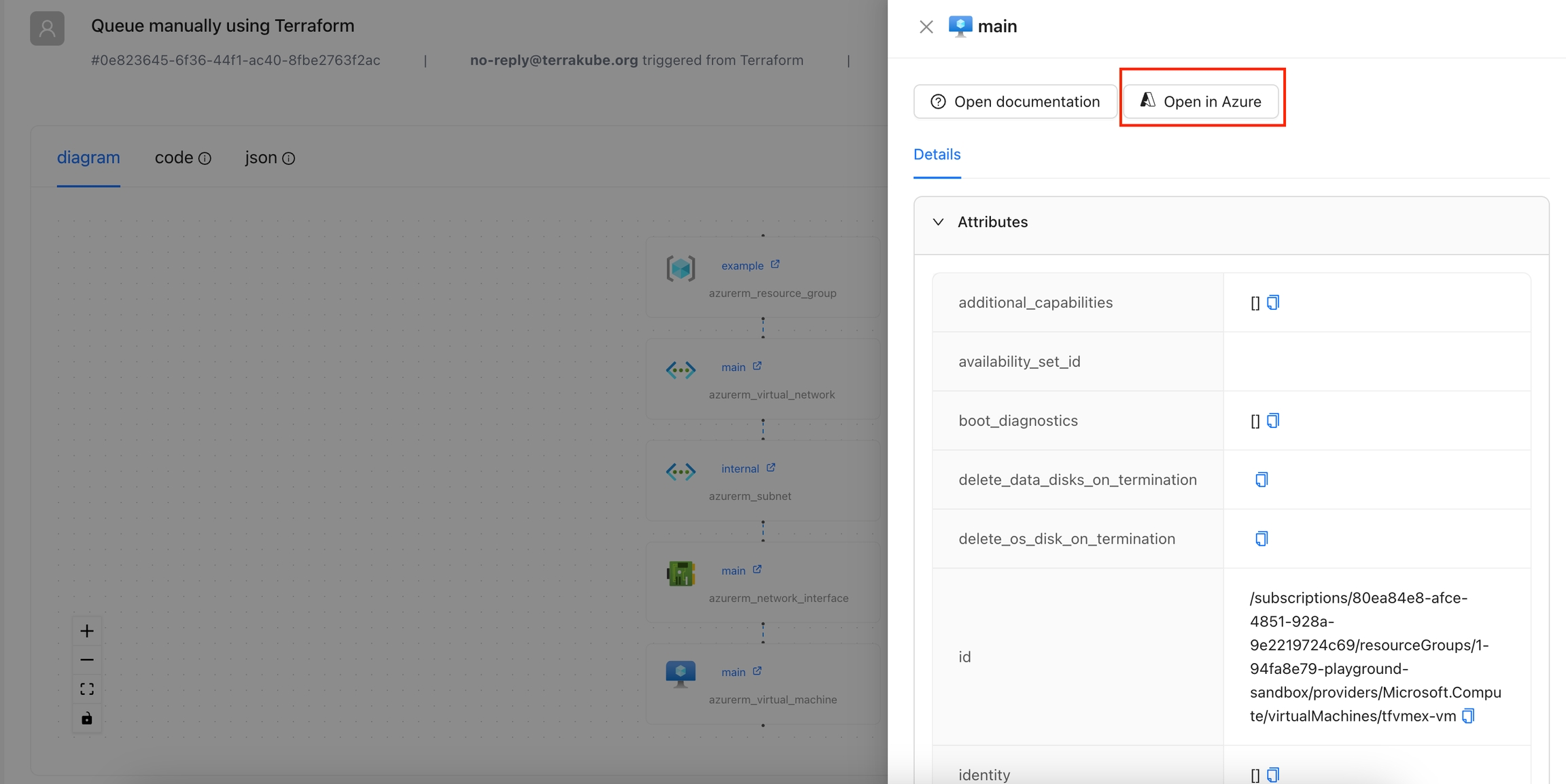The Open In Azure Portal action is designed to provide quick access to the Azure portal for a specific resource. By using the context of the current state, this action constructs the appropriate URL and presents it as a clickable button.