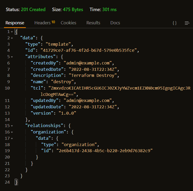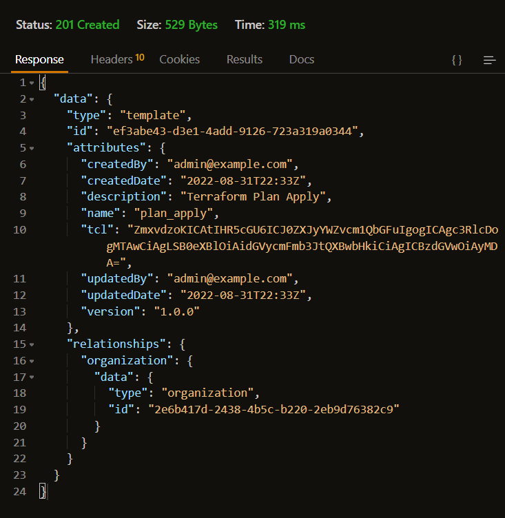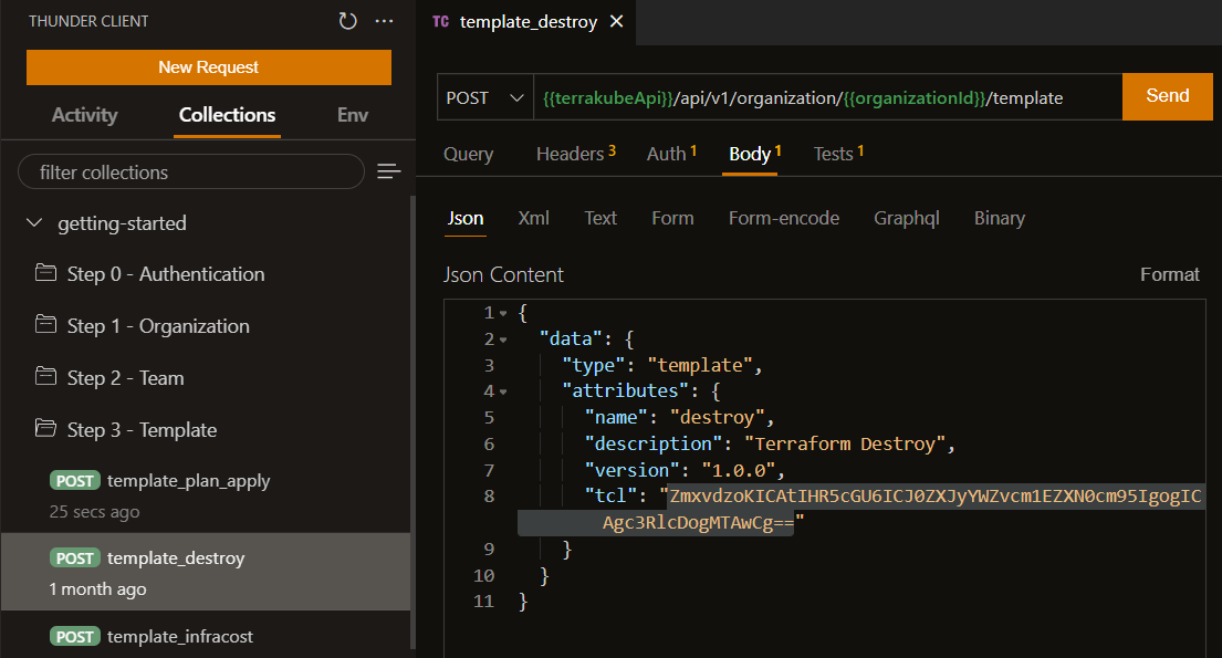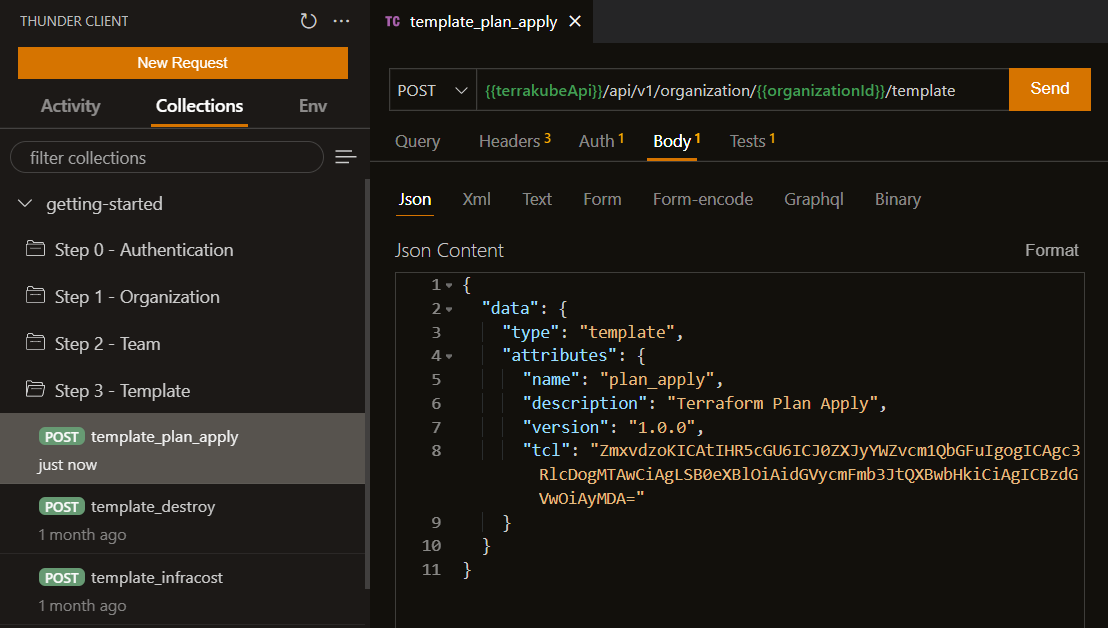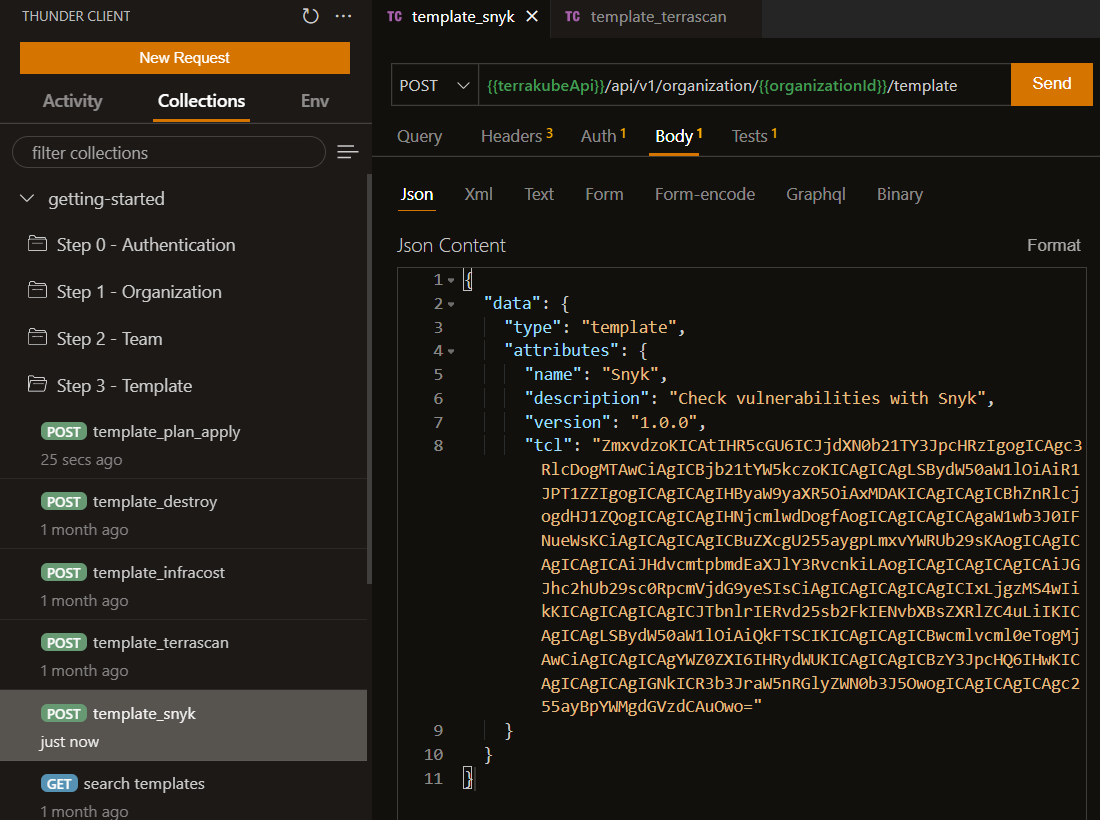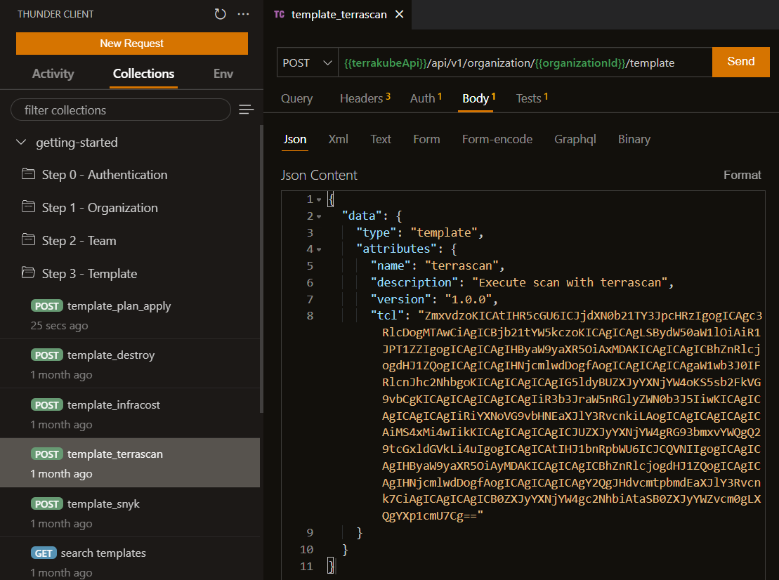 To create it we will use the request inside the postman collection "Step 3 - Templates"