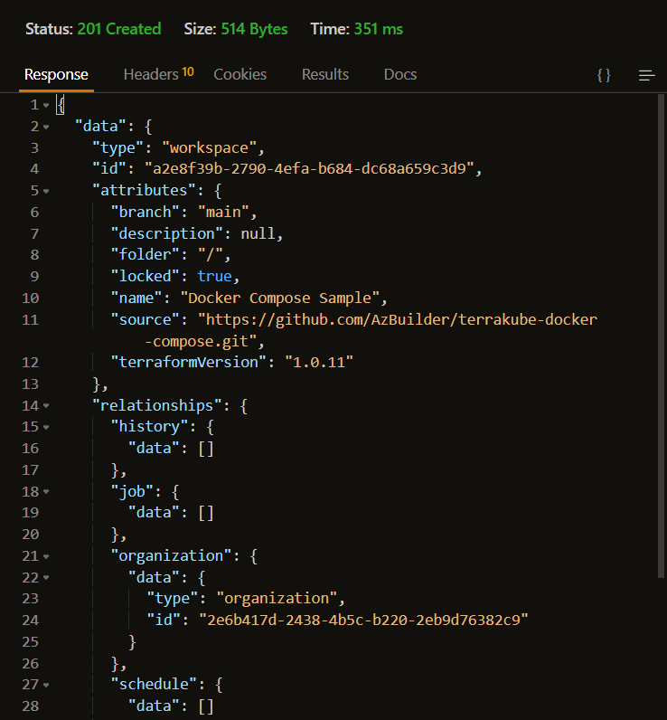 When Terrakube runs a job it will start saving all the states and changes inside the workspace history. To validate all the state changes we can use the workspace history endpoint.
