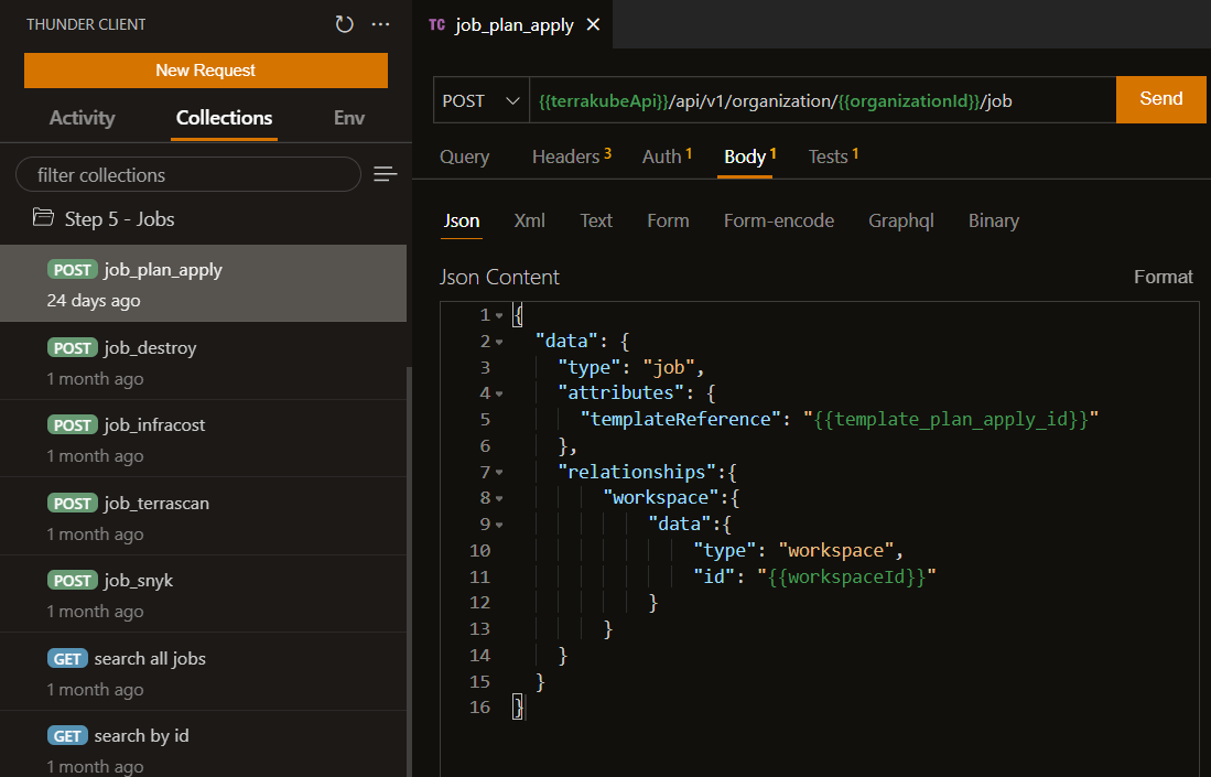 To create it we will use the request inside the postman collection "Step 5 - Jobs"