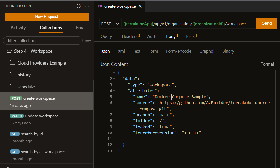 To create it we will use the request inside the postman collection "Step 4 - workspace"