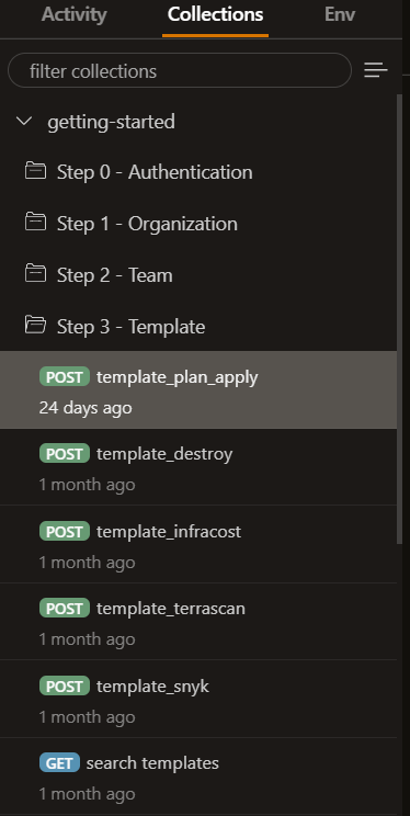 Now our firts organization have to templates, one to run a terraform plan/apply and one for a terraform destroy. Lets create a couple of more templates.