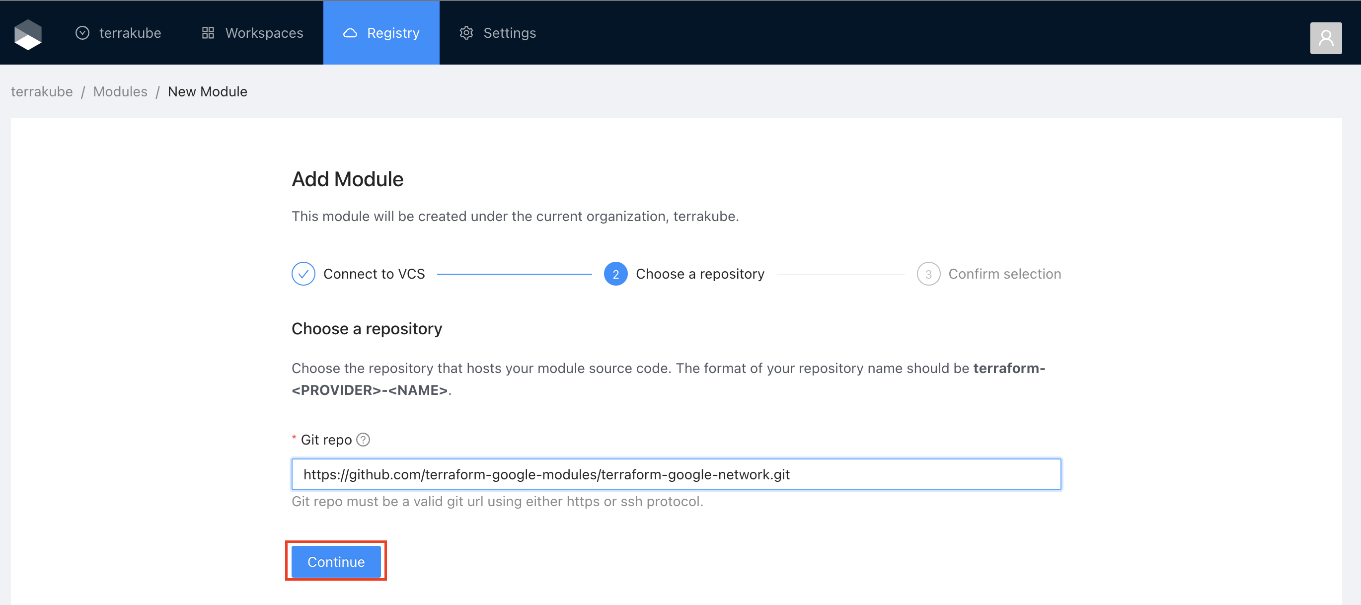 To release a new version of a module, create a new release tag to its VCS repository. The registry automatically imports the new version.