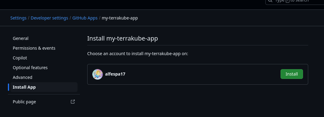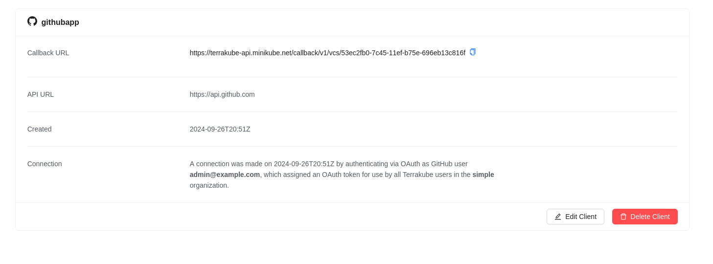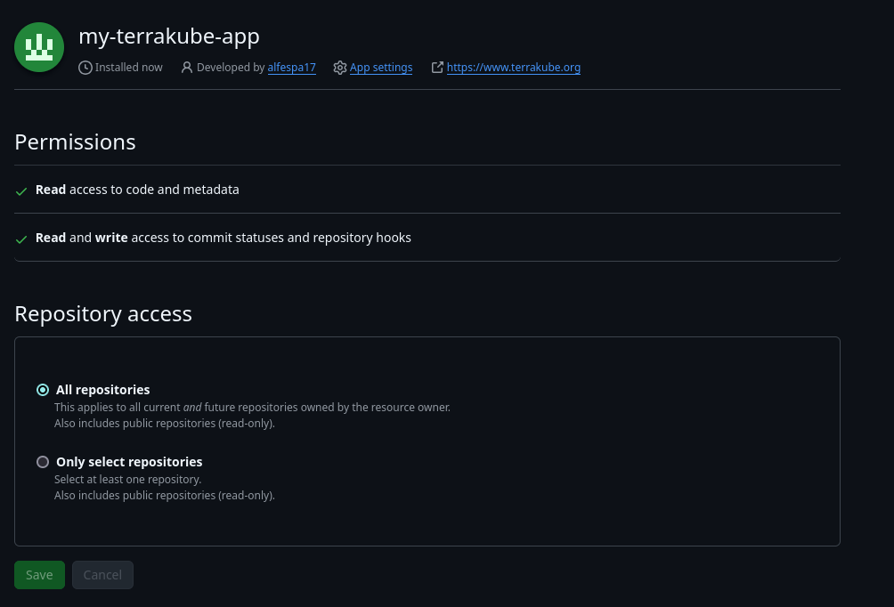 The github app will be added to Terrakube and will be shown like this: