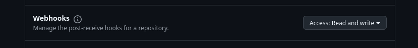 Add "Webhooks" with "Read and Write"