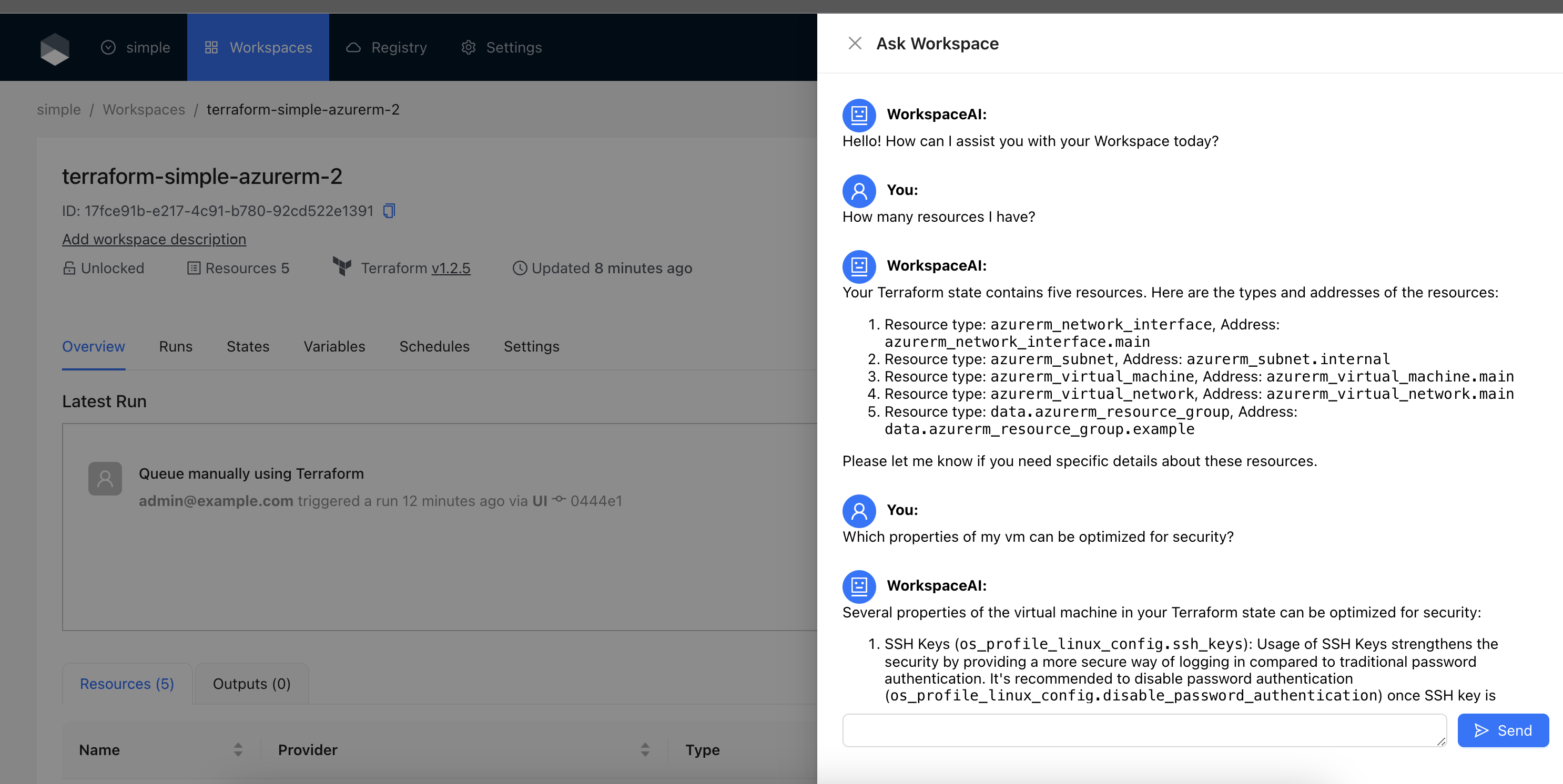 * **AI Integration:** Use AI to diagnose issues in your Workspaces. By integrating with models like OpenAI, Claude, and Gemini, you can quickly resolve errors in your infrastructure.