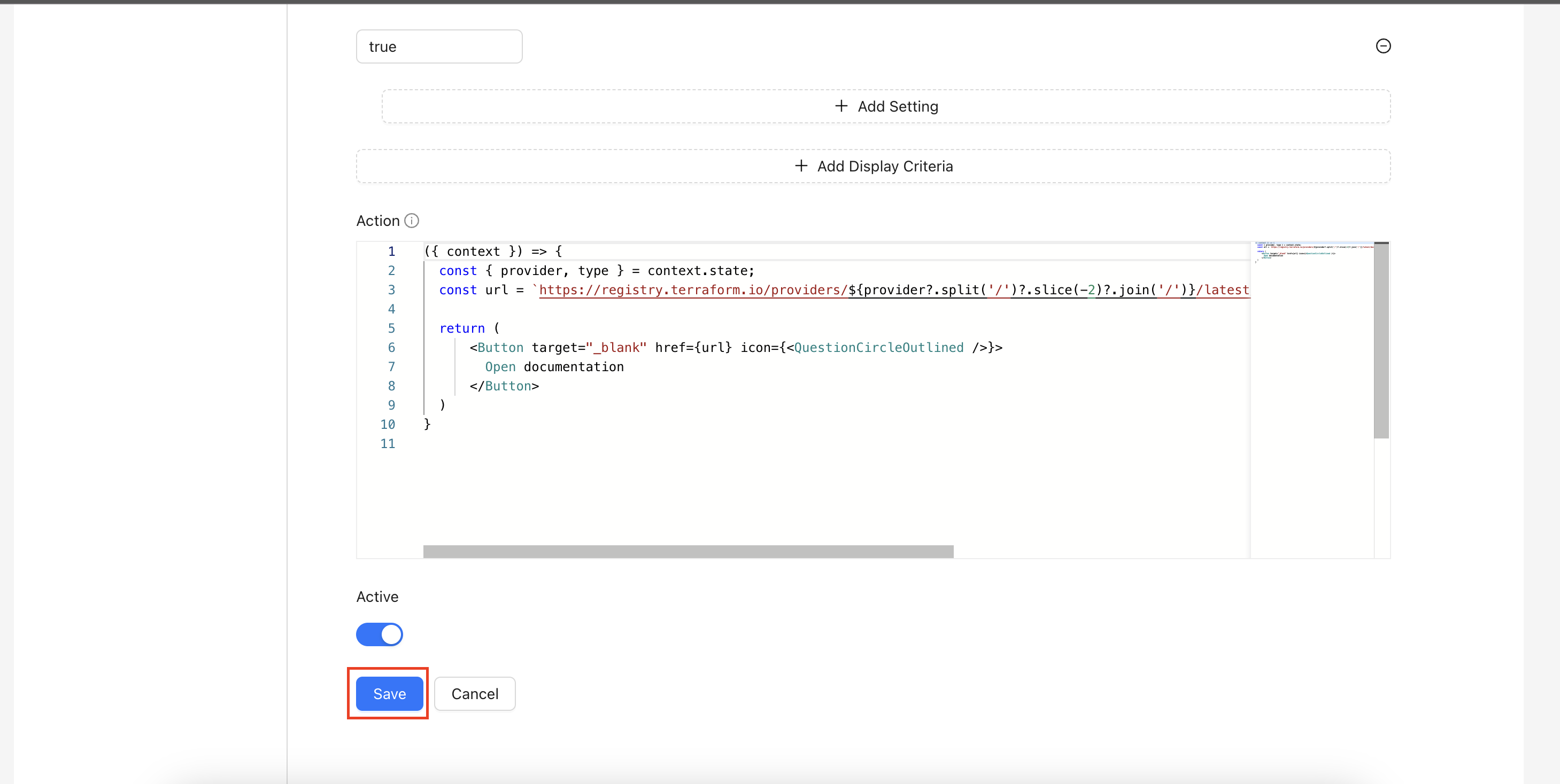 * **Flexibility:** Quickly disable an action if it is not useful for your organization or set conditions for actions to appear, such as if a resource is hosted in GCP or if the workspace is `Dev`.