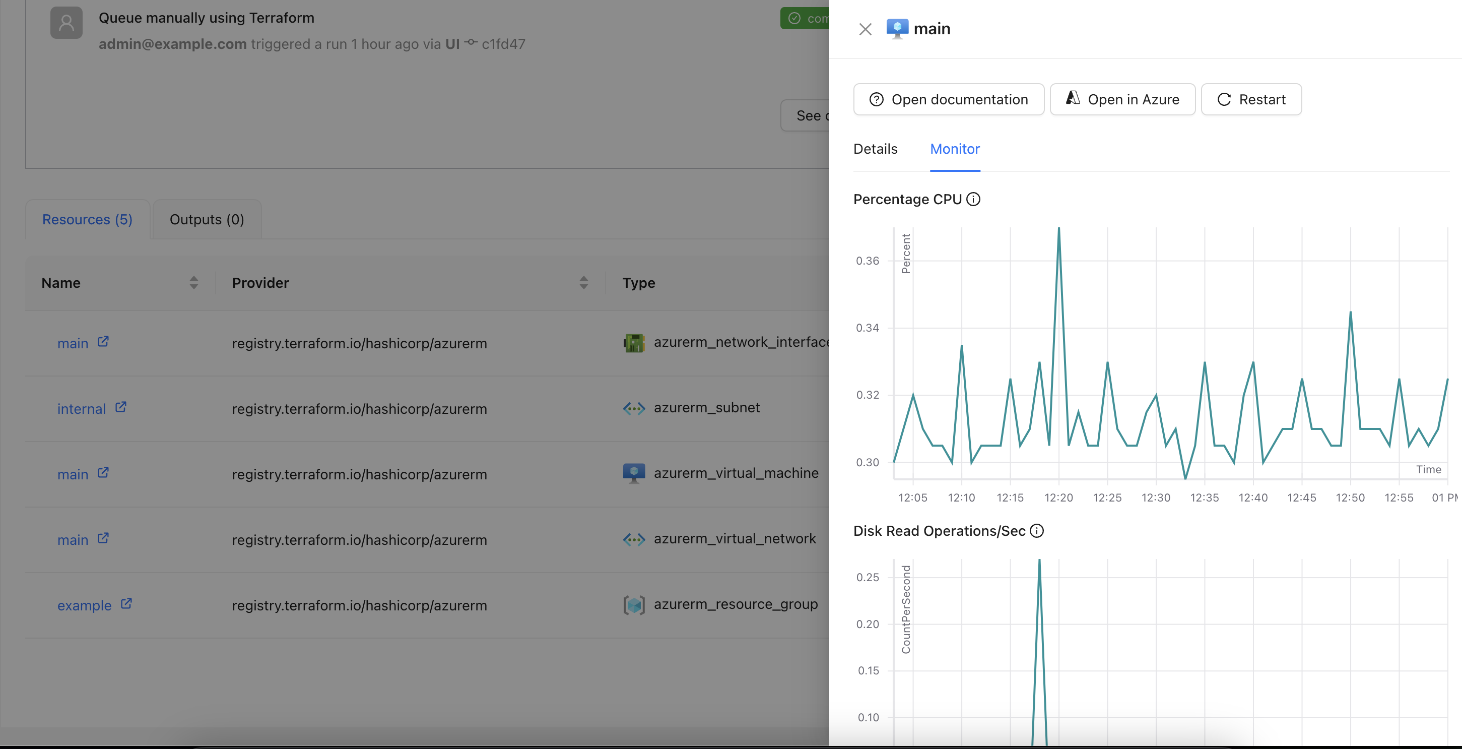 * **Manage Infrastructure:** Restart your Azure VM or add an action to quickly navigate to the resource in the Azure portal directly from Terrakube.