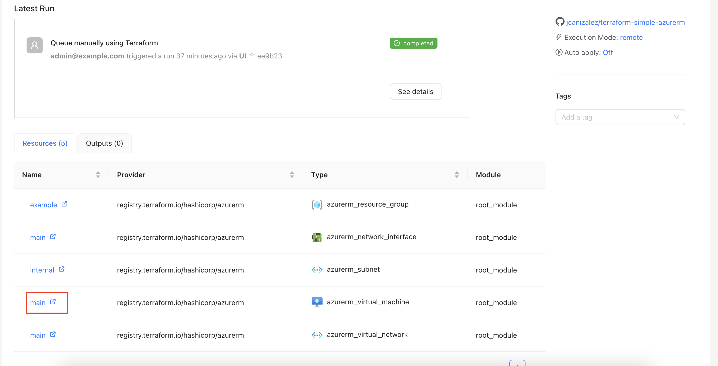 * Navigate to the `Workspace Overview` or the `Visual State` and click on a resource name.