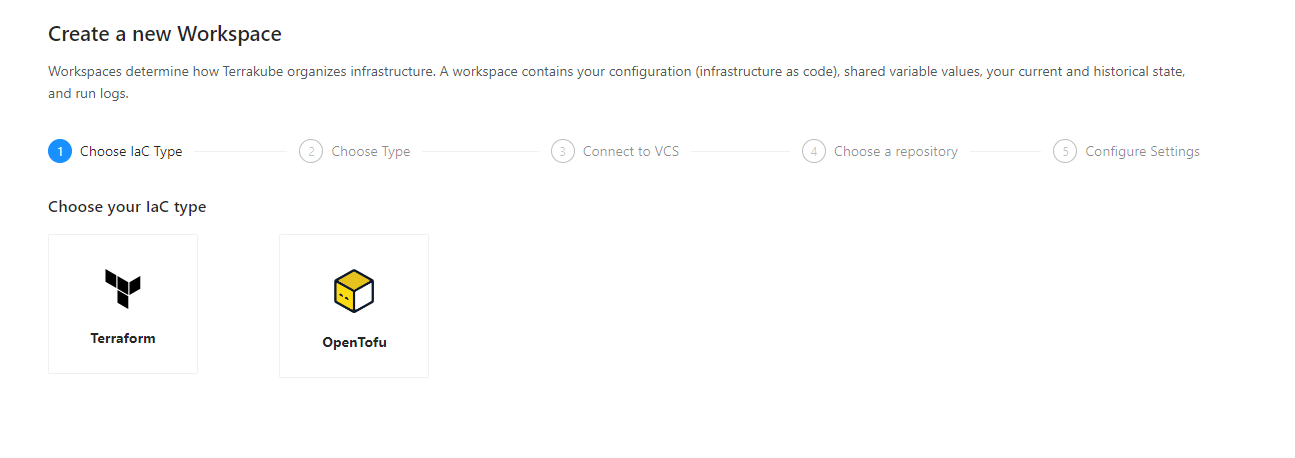 Select the IaC type for now we support terraform and open tofu