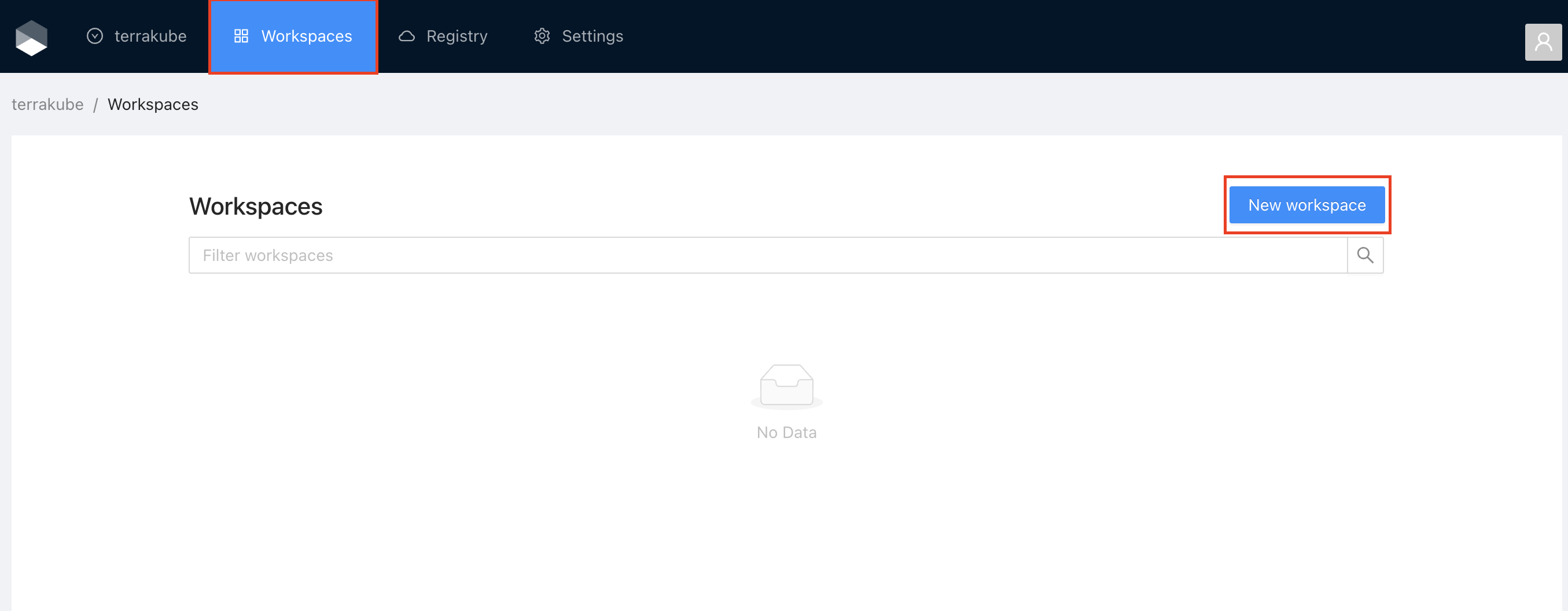 Click **Workspaces** in the main menu and then click the **New workspace** button