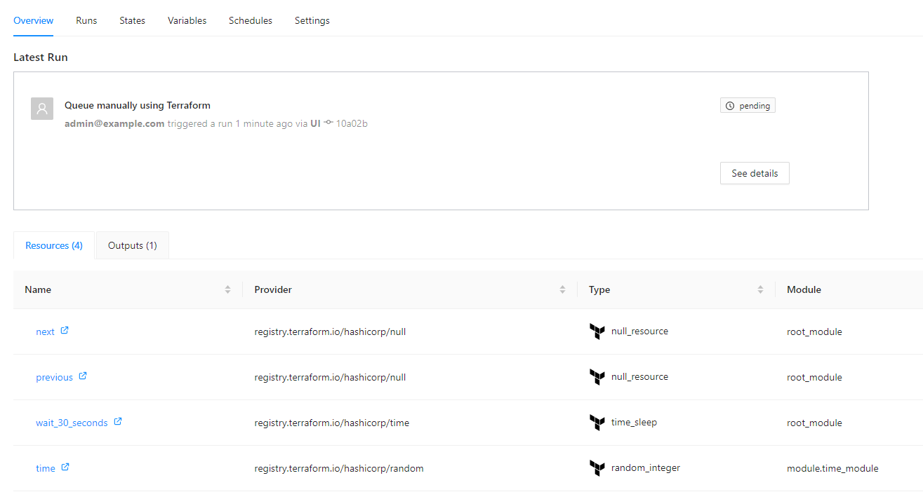 Each Terrakube workspace has its own separate state data, used for jobs within that workspace. In Terrakube you can see the Terraform state in the standard [JSON format](#json-state) provided by the Terraform cli or you can see a [Visual State](#visual-state), this is a diagram created by Terrakube to represent the resources inside the JSON state.