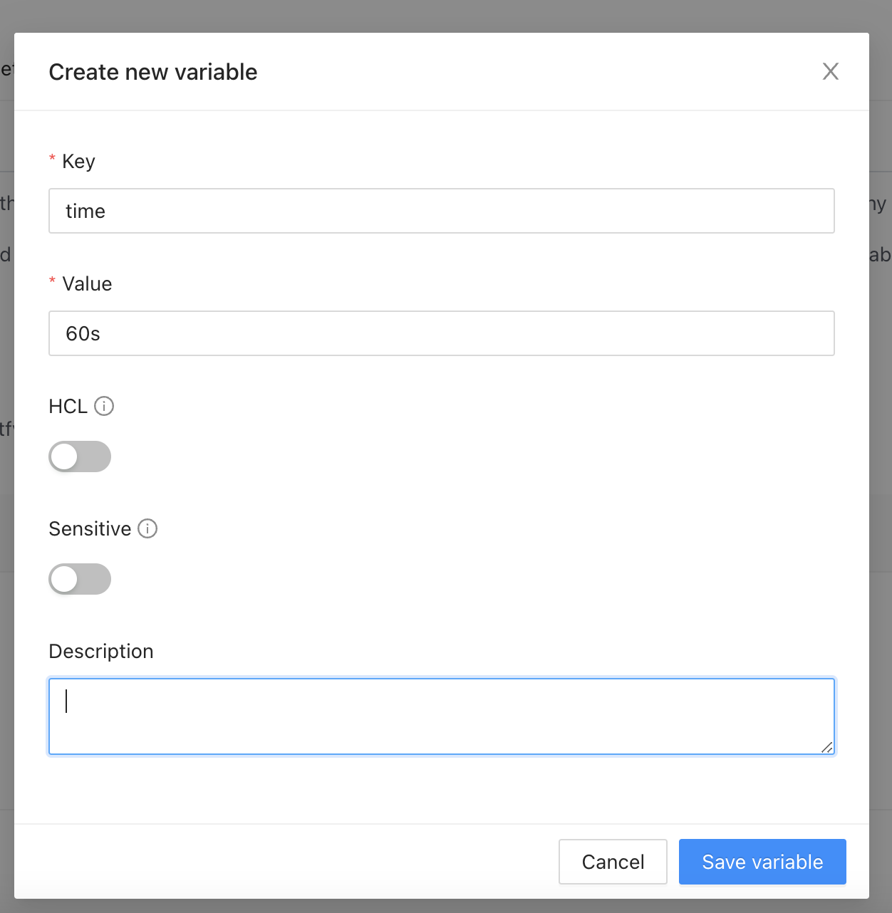 | Sensitive   | Sensitive variables are never shown in the UI or API. They may appear in Terraform logs if your configuration is designed to output them. |